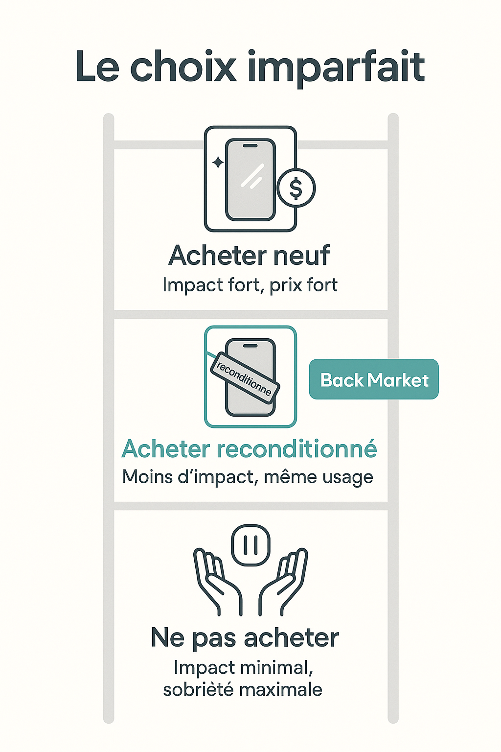 Et au centre : un smartphone reconditionné comme solution.